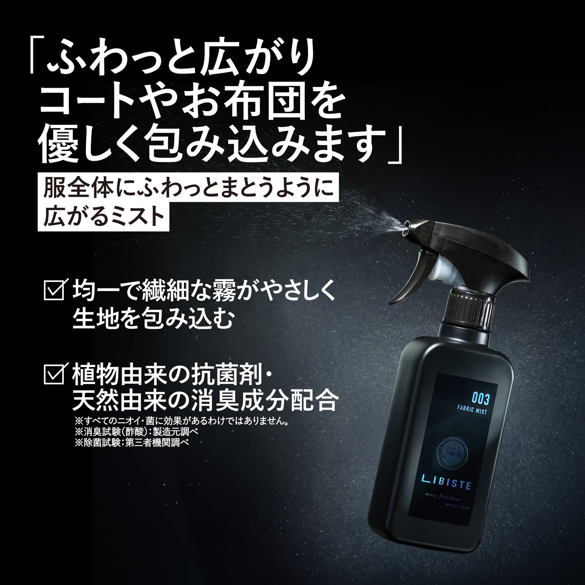 LIBISTEのファブリックミストは、緻密に設計された繊細なスプレーが、日常に「清潔」と「安心感」を届けます。